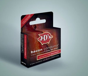 Правда в компании говорят, что начали сексуальное направление в мясной индустрии как розыгрыш на 1 апреля. Но дела неожиданно пошли вверх. Презервативы со вкусом бекона стоят 10 долларов за упаковку с тремя штуками. "Презервативы только делают вашу колбаску похожей на настоящее мясо. Они сделаны из латекса и покрыты специальным ароматизированным лубрикантом", - объясняет производитель.