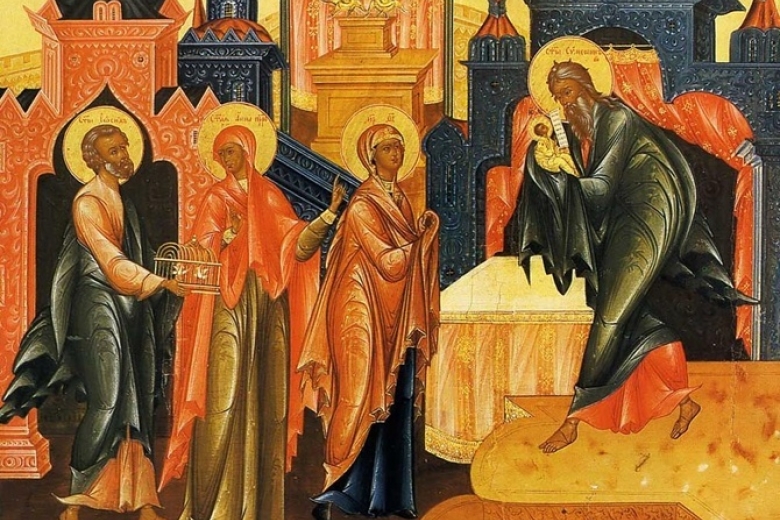 По ветхозаветному обычаю, на 40-й день после рождения Иосиф и Мария принесли своего первенца в Иерусалимский храм, чтобы посвятить его Богу. Там Иисуса, согласно Евангелию, встретил 360-летний старец Симеон, которому было предсказано, что он не умрет, пока не увидит Спасителя рода человеческого, появившегося на свет.