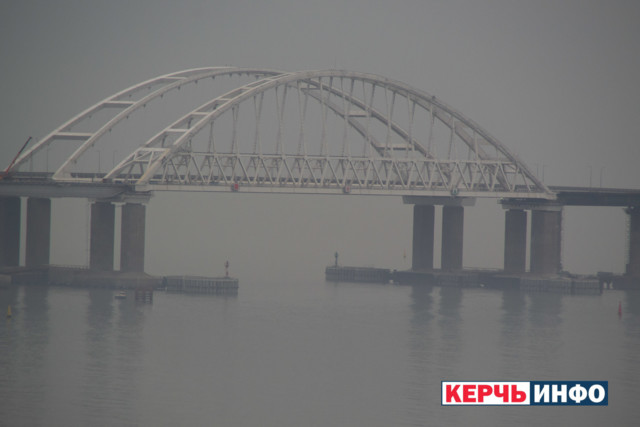 Опубликованы новые фото Крымского моста. Керченский пролив окутал густой туман, и получилось, будто незаконно построенный россиянами объект "завис в воздухе".