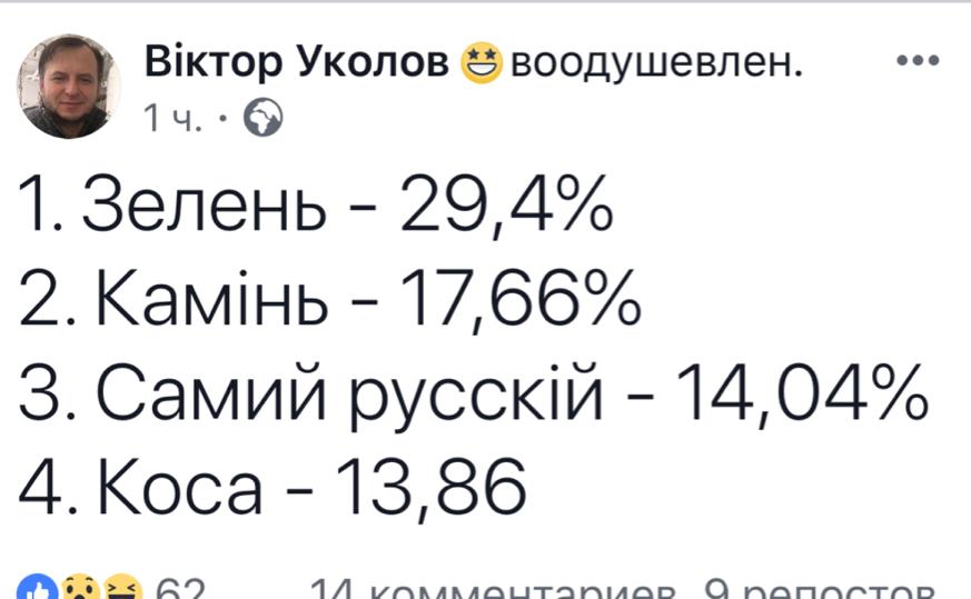 Экс-нардеп, журналист и политэксперт, которого связывают с Администрацией действующего президента Виктор Уколов обнародовал на своей странице в ФБ предварительные данные экзитпола.