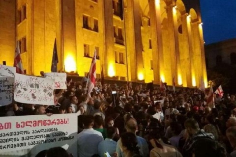 В субботу, 22 июня, в грузинской столице возобновились массовые протесты у здания парламента, сообщило издание "Sputnik Грузия".