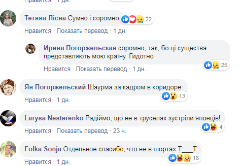 "Партизанский отряд протокола постоянно действует. Так талантливо продемонстрировать пренебрежение к японцам – надо еще постараться. Отдельно каждый и оптом все криворожский колхоз "40 лет без урожая", – написала она.
