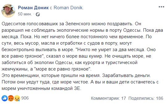 - Море и так грязное, - ответил на это Зеленский.