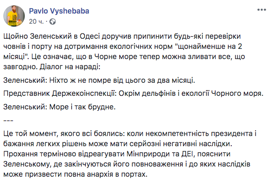 Об этом сообщил Pavlo Vyshebaba в Facebook.