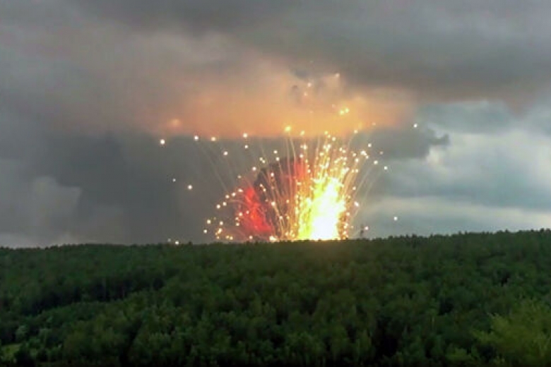 Детали: За пожаром, начавшимся в 13 часов по московскому времени, последовали взрывы. На площадке по утилизации, где произошло возгорание, находится около 25 тысяч боеприпасов.