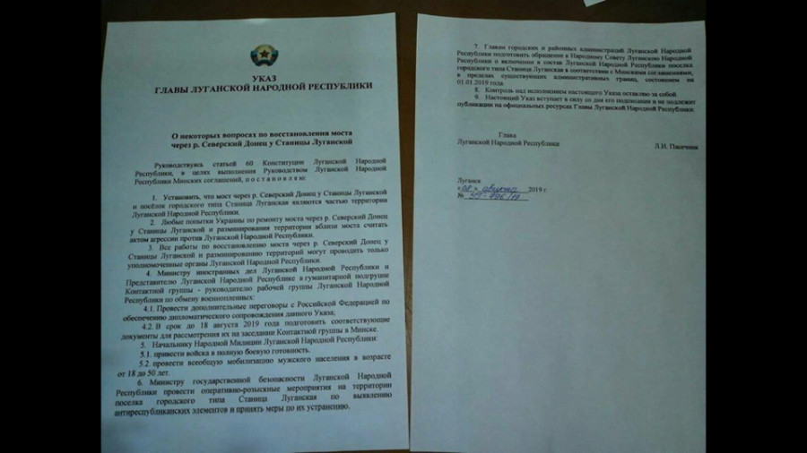 Прямым подтверждением тому может послужить приведенный ниже «документ», который сепаратисты издали, скажем так, для внутреннего пользования. При этом он есть в свободном доступе в Соцсети ФБ. В частности, из него следует, что после отхода сил ВСУ, они уже считают себя полноправными хозяевами. Более того, попытку восстановления разрушенного моста через Северский Донец около Станицы Луганской они намерены воспринимать, как прямое военное вторжение на якобы «их» земли. Впрочем, как и сам поселок они вдруг провозгласили частью своей «республики».