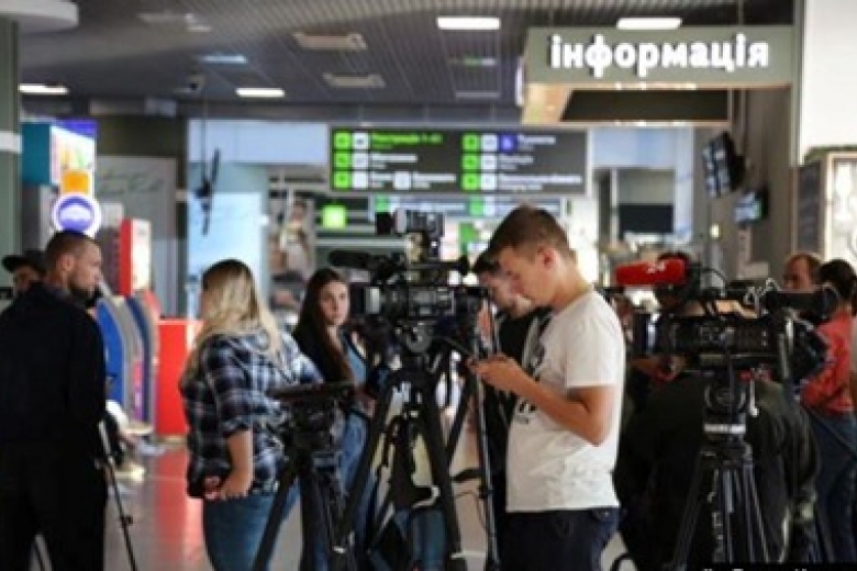 В аэропорту Киев собрались десятки журналистов после сообщений, что именно сюда прибудут политзаключенные и моряки в рамках украинско-российского обмена, сообщает Крым.Реалии.