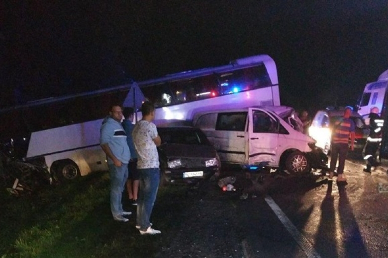 Во Львовской области произошло столкновение маршрутки, легкового автомобиля и пассажирского автобуса с детьми, один человек погиб.