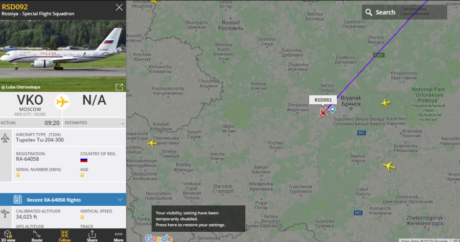В данный момент самолет, вылетевший из России, пролетел Брянск. Данные доступны в специальном сервисе.