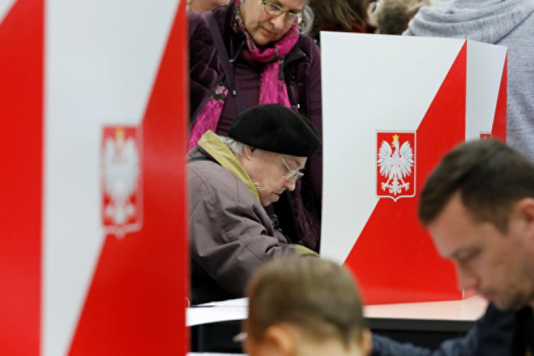 На парламентских выборах в Польше правящая партия "Право и справедливость" Ярослава Качиньского набирает наибольшее количество голосов.