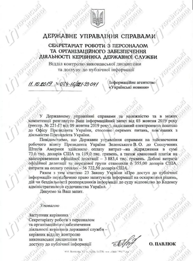 Официальный визит Владимира Зеленского в США 23-26 сентября обошелся в 7,3 миллиона гривен.