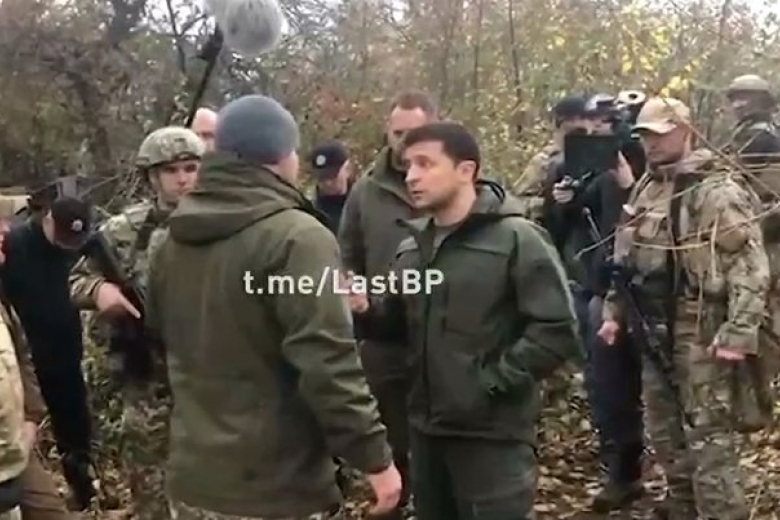 Президент Украины Владимир Зеленский утром 26 октября посетил населенный пункт Золотое на Донбассе и встретился с ветеранами, которые находятся вблизи линии фронта. Впоследствии сообщество «Останній блок-пост # Ні_капітуляціі» обнародовало видео, на котором Зеленский общается с людьми в камуфляже.
