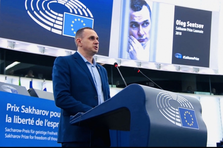 Сегодня Сенцов получил премию имени Сахарова, которую ему присудили 25 октября 2018 года, когда он находился в российской тюрьме.