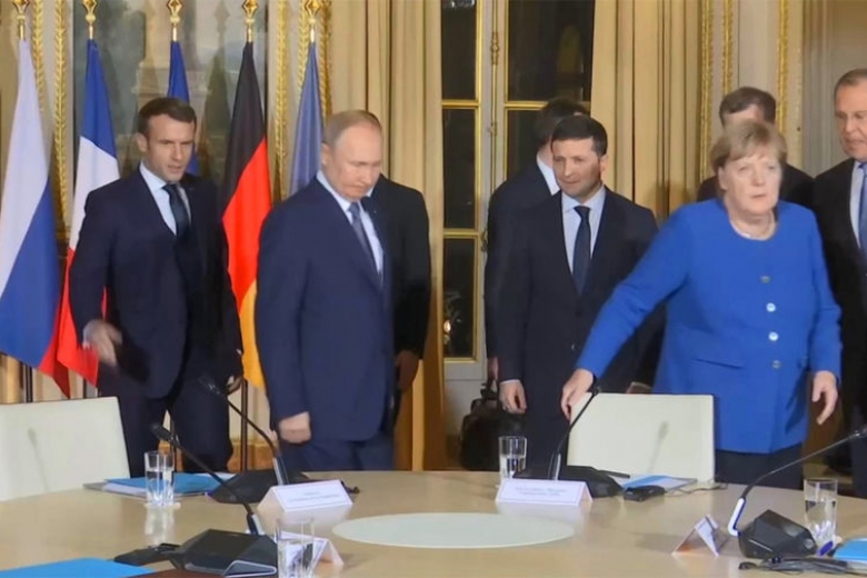 Президент Владимир Зеленский, канцлер Германии Ангела Меркель, президент Франции Эмманюэль Макрон и президент России Владимир Путин дают совместную пресс-конференцию по итогам переговоров в нормандском формате, которые прошли 9 декабря в Париже. Трансляцию обеспечивает Радио Свобода.
