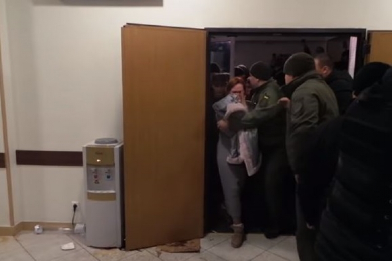 Как сообщалось, адвокат и сторонники Кузьменко отказались покидать зал суда после закрытия заседания. После этого в зал суда вошли силовики в касках и бронежилетах и вывели подозреваемую.