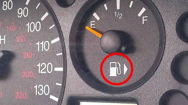 Стрелка около значка топливного бака