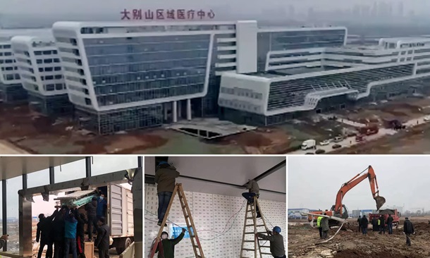 Еще одна больница строится с нуля в Ухане, в 75 км, и, как ожидается, будет завершена в конце этой недели после всего лишь недели строительства.