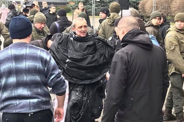 В какой-то момент из толпы выскочил мужчина, который горел. Предварительно, он поджег себя сам, чтобы привлечь к себе внимание.