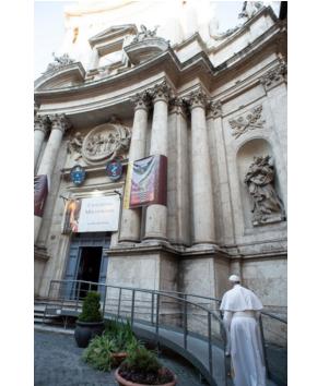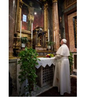 Папа Римский Франциск покинул Ватикан и прошелся по опустевшему Риму пешком в церковь Сан-Марчелло-аль-Корсо, где помолился об окончании пандемии в мире перед Крестом Великой Чумы.