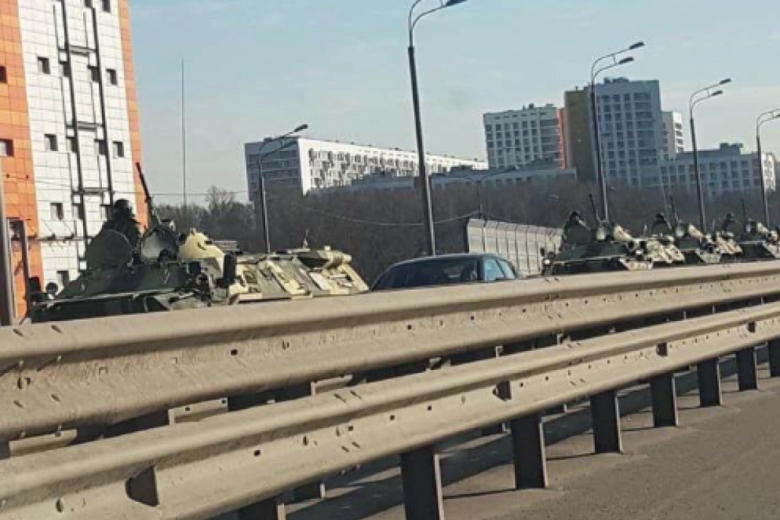 Пользователи Интернета начали массово публиковать видеоролики, на которых видно, что в город направляются колонны бронетехники и автобусы с солдатами.