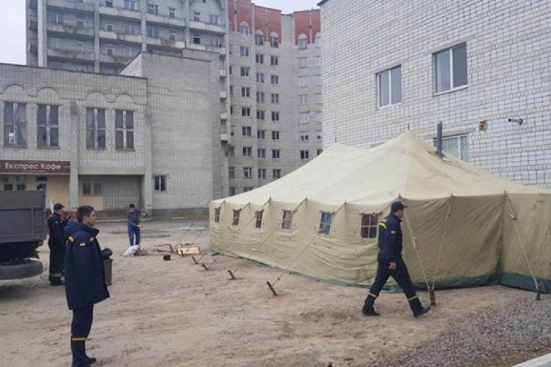 Ранее сообщалось, что на Донбассе появились пункты сортировки для заболевших COVID-19. Временные пункты приема больных представляют собой пневмокаркасные модули и палатки УСБ-56.