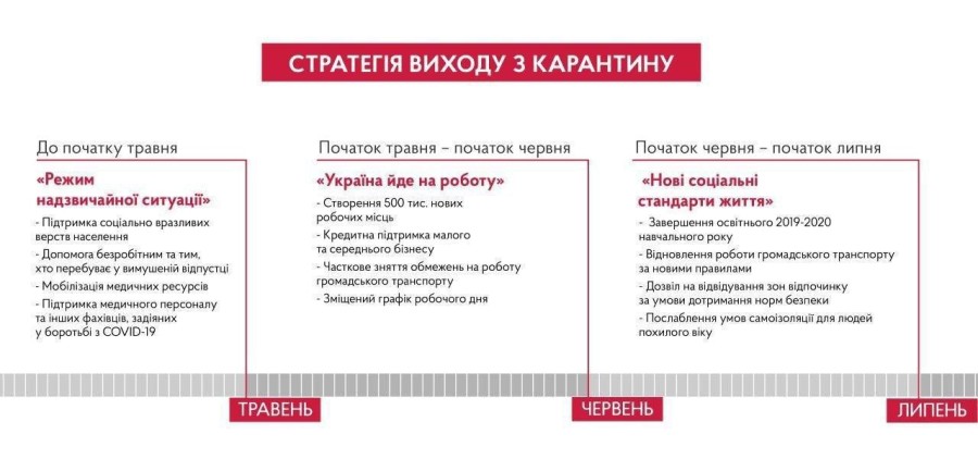 Как видно из инфорграфики, до начала мая будет действовать режим чрезвычайной ситуации. Во время этого периода планируется поддерживать социально незащищенные слои населения и мобилизовать медицинские ресурсы.
