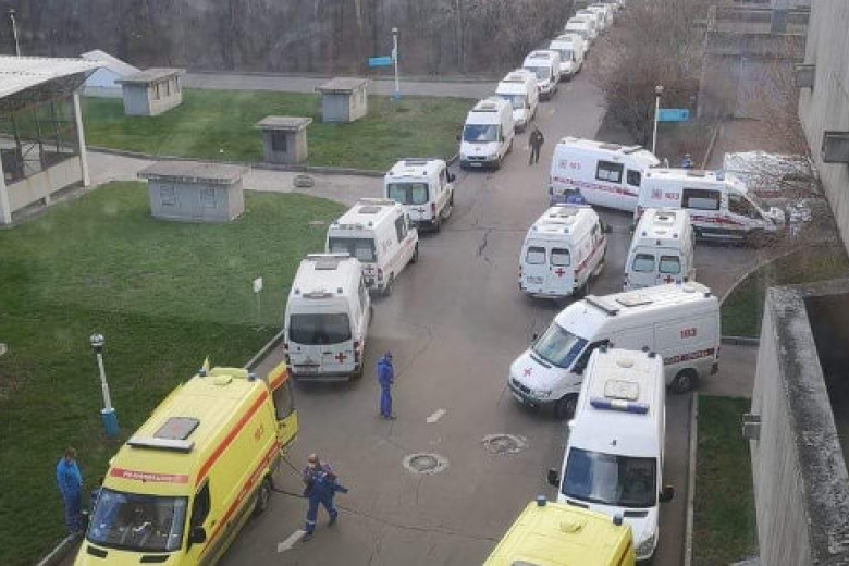 Об этом свидетельствуют сообщения работников "скорой", рассказывающих о сложившейся ситуации. По сообщению российского издания Грани.ру видео снято бригадой скорой помощи у ФКЦ ВМТ ФМБА в подмосковном городе Химки.