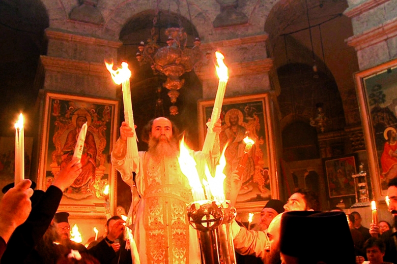 В ХРАМЕ ГРОБА ГОСПОДНЯ НАЧАЛАСЬ ЦЕРЕМОНИЯ СХОЖДЕНИЯ БЛАГОДАТНОГО ОГНЯ