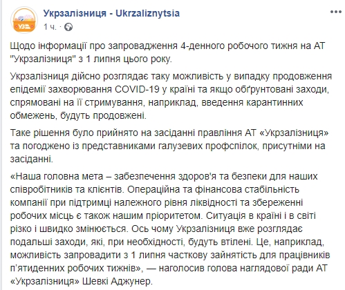 "Вот почему Укрзализныця уже рассматривает дальнейшие меры, которые, при необходимости, будут воплощены. Это, например, возможность ввести с 1 июля частичную занятость для работников пятидневных рабочих недель", - отметил он.