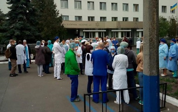 Как сообщает Сегодня, медики отказываются работать за 3-5 тысяч гривен в условиях эпидемии коронавируса. Работники больницы собрались под зданием на улице Кондратюка. Медики утверждают, что им не увеличили зарплаты, как ранее заявляли власти.