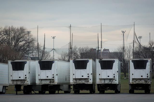 "Внутри грузовиков, припаркованных возле похоронного бюро на авеню Ютика в Бруклине, было несколько десятков разлагающихся тел", - сообщает New York Times.