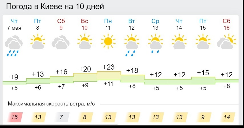 Народный синоптик Наталья Диденко на своей странице в Facebook написала, что уже в пятницу, 8 мая, над страной покажется солнце, циклон начнет отступать и через пару дней столбики термометров пересекут отметку в +20 градусов.