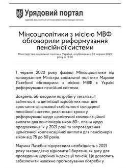Руководитель Минсоцполитики Марина Лазебная обсудила с миссией Международного валютного фонда в Украине реформирование пенсионной системы. Так, в Украине планируют проводить индексацию пенсий ежегодно 1 марта.