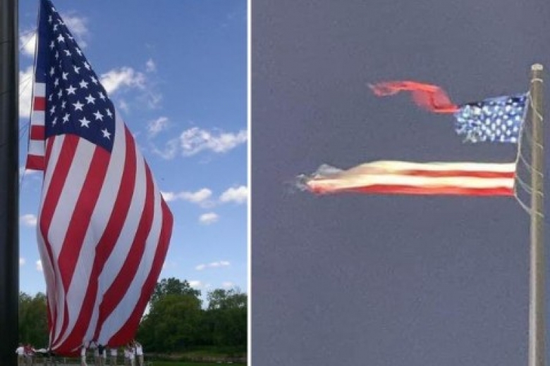 Самый большой национальный флаг США, который находился в американском штате Висконсин разорвало пополам после удара молнии, сообщает Heavy.