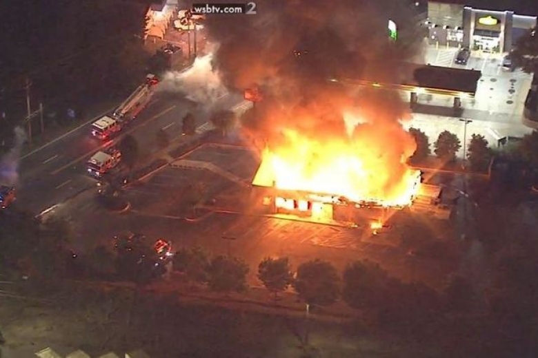 После этого на улицы города вышли активисты, которые начали жечь машины и устраивать погромы - кафе, возле которого застрелили Брукса, было сожжено. Люди скандировали лозунги против полиции.