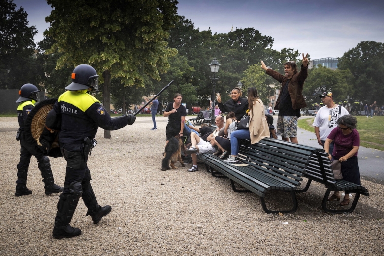 Ранее мэр Гааги Йохан Ремкес запретил группе Virus Waanzin ("Вирусное безумие") проведение антикарантинной акции. Однако несколько сотен демонстрантов собрались возле железнодорожного вокзала. Тогда мэр все же позволил им провести короткую акцию, но когда хулиганы начали движение в сторону центра города, полиция вмешалась. В конце концов, правоохранители вытеснили протестующих с площади у вокзала.