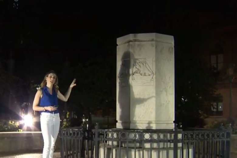 В этот момент в городе запускали фейерверки в честь праздника. Как известно, мореплавателя обвиняют в геноциде коренного населения Америки, требуя пересмотреть взгляды на его наследие.