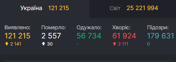 За минувшие сутки, 30 августа, в Украине зафиксировали 2 141 новый случай коронавируса, 30 человек умерли.