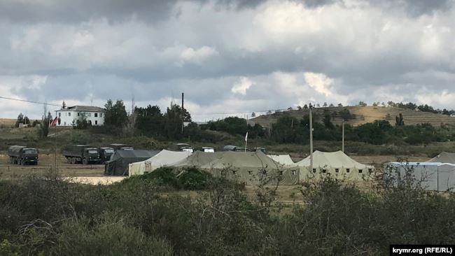 На месте проведения работ военные разбили палаточный городок, задействовано много техники.