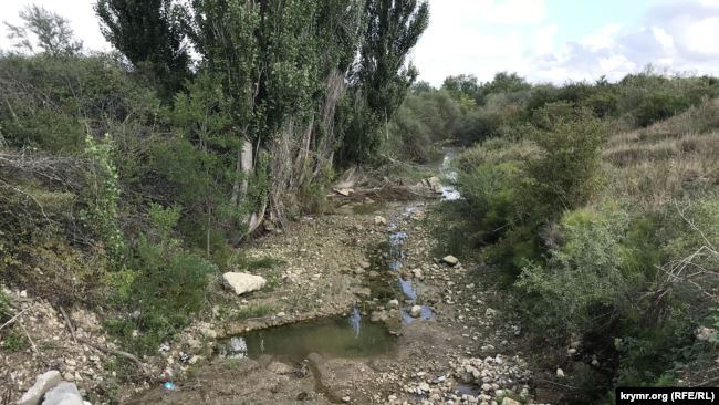 Река Биюк-Карасу ниже земляной дамбы, насыпанной военными, осталась без воды.
