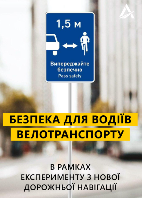 Во Львовской и Луганской областях появились новые дорожные знаки, которые призывают водителей авто при обгоне велосипедистов выбирать безопасную дистанцию, не менее 1,5 м.