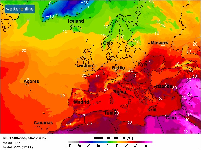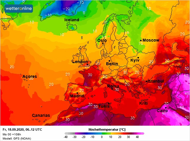 На погоду на европейском континенте во вторник, 15 сентября, будет влиять мощный антициклон, который распространит область высокого атмосферного давления от Атлантики до Украины, от Скандинавии до Крита.