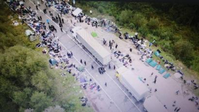 Пограничный пропускной пункт с 14 сентября закрылся для пешеходов и транспорта, людей отправляют на соседние переходы. В это время около 200 грузовых машин уже успели попасть в нейтральную зону - их не пропускают, некоторые фуры стоят на месте уже сутки.
