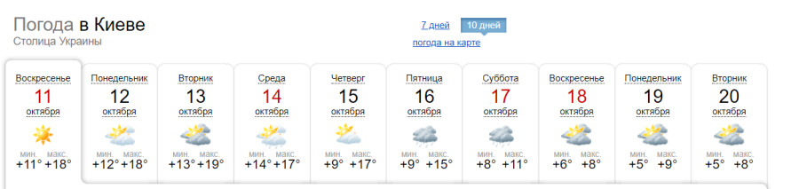 Стоит отметить, что в Киев похолодание придет 18 октября, судя по данным sinoptik.ua, накануне будут идти дожди, но мокрого снега не ожидается.