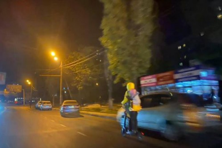Отметим, что женщина едет рядом с машинами, что довольно странно. Ведь на самокате она может без никаких запретов ехать по зоне для пешеходов.