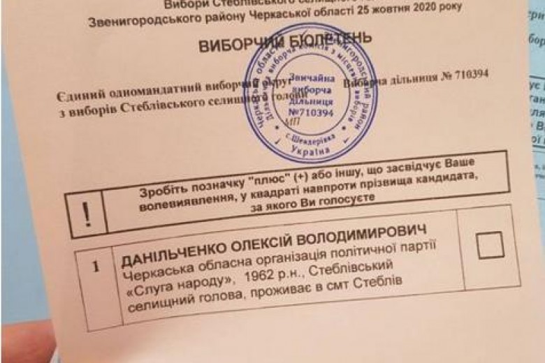 На главу Стеблевской ОТО в Звенигородском районе Черкасской области баллотировался только один кандидат. Об этом рассказал в Facebook рассказал аналитик Комитета избирателей Украины Денис Рыбачок.