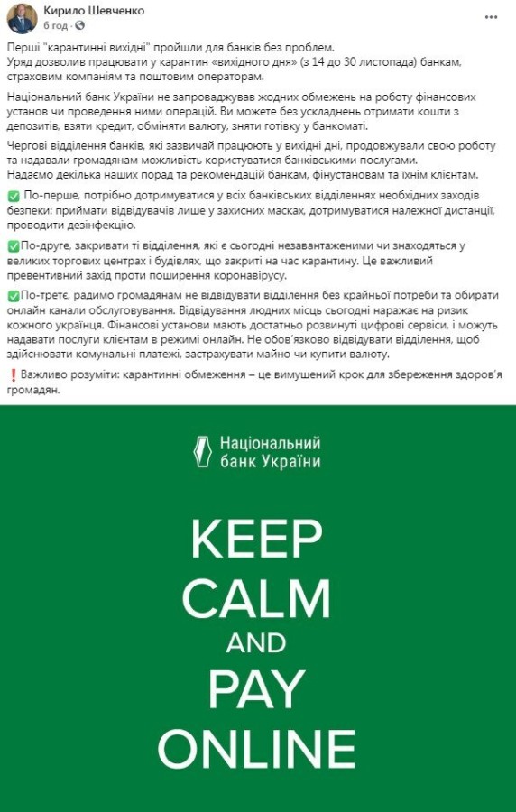 Об этом сообщил глава Национального банка Кирилл Шевченко на своей странице в Facebook.