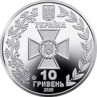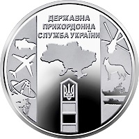 Как сообщается на сайте НБУ, на аверсе монеты вверху изображены малый государственный герб, надпись Украина, эмблема Госпогранслужбы, стилизованные ветви лавра и калины, а также логотип Банкнотно-монетного двора Нацбанка.