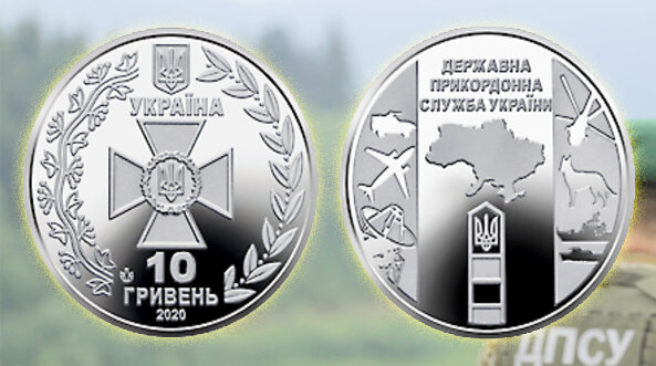 На аверсе монеты – герб, надпись "Украина", эмблема ГПСУ, ветви калины и лавра.