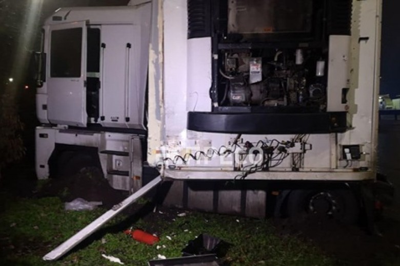 В Святошинском районе Киева ночью произошло серьезное ДТП. Автоцистерна-бензовоз DAF протаранила припаркованный в правой полосе грузовик Renault, водитель которого отдыхал.